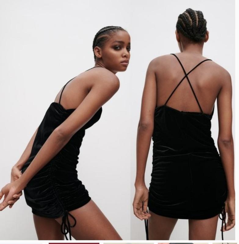 🌿маленька чорна сукня від Zara з м'якого велюру, гарно тягнеться, сідає по фігурі Розмір:S Заміри:ПО грудей 40 см, ПО бедер 45 см, довжина 80 см