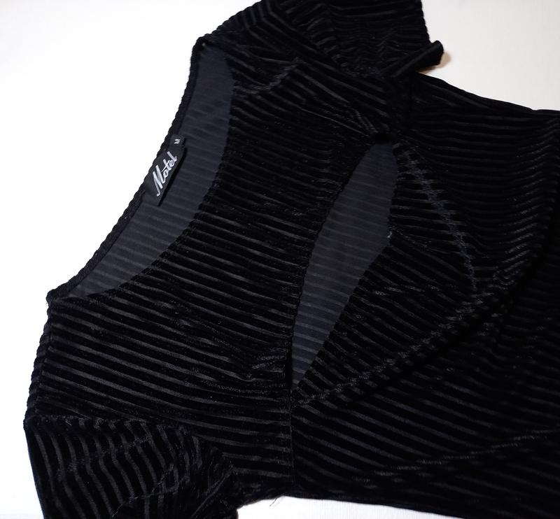 Оксамитова сукня з цікавими вирізом, у рубчик Motel M(44р),маломірне Довжина сукні 76 Груди 37,5 Талія 35,5 Бедра 42