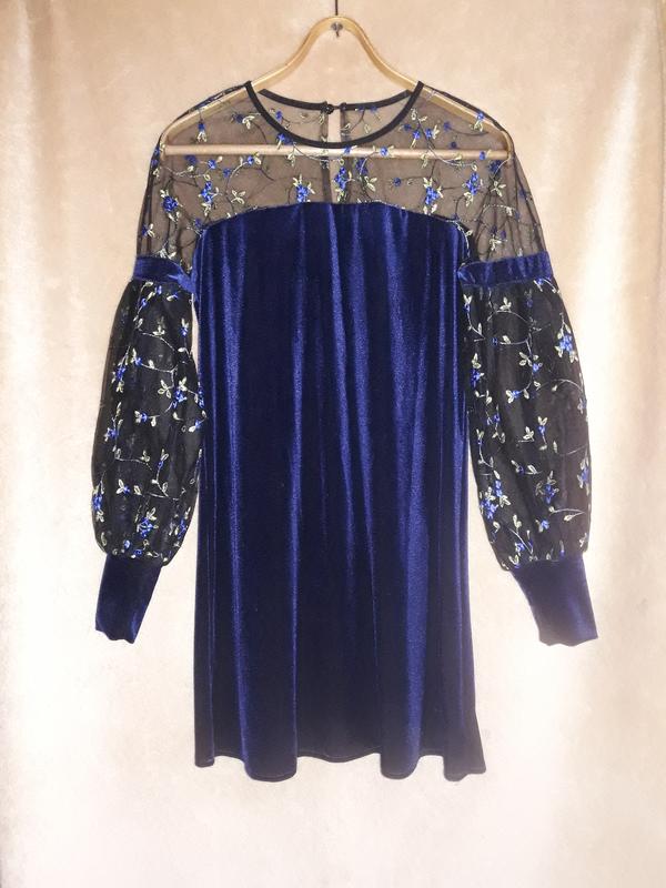 гарна сукня в обємними шифоновими рукавами з вишивкою, вільного крою довжина84 груди45 бедра 54 рукав64