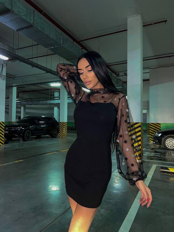 Артикул: 688-676 Колір: чорний зі зірками Розмір: 42-44, 46-48 Матеріал: креп дайвінг і сітка
