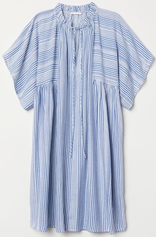 Сукня літня з суміші котону та віскози. Вільний крій у стилі нічної сорочки, збірка на шиї з зав’язкою спереду. Легка та комфортна. У складі котон та віскоза. Довжина 88 Рукав від коміра 34 ПОГ не обмежений кроєм Об’єм під рукавами 58 Об’єм коміра 50 Низ 86