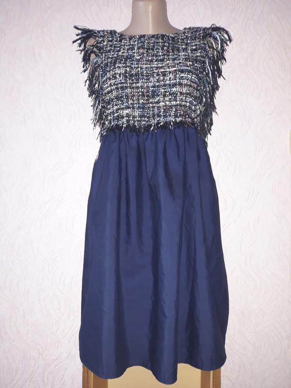 Красива легка сукня.Заміри:ПОГ 40 см,ПОТ 36 см,ПОС до 50 см.Довжина 88 см.Склад:65% поліестер,35% котон.На спині прихована блискавка.Без підкладці.В бокових швах кармани.