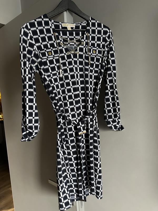 В ідеальному стані. Розмір S-М. Тканина еластична, трохи тягнеться. Довжина до коліна. Колір темно-синій з білим, золоті деталі.