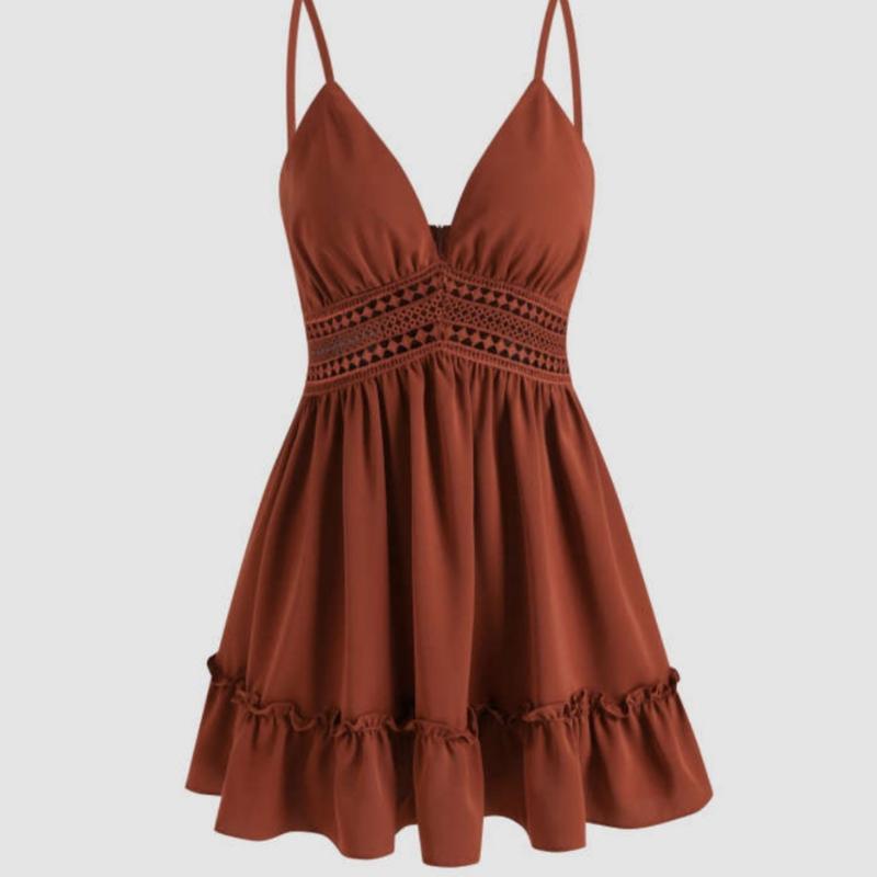 Сукня міні на брительках внизу з рюшами пишна з глибоким декольте