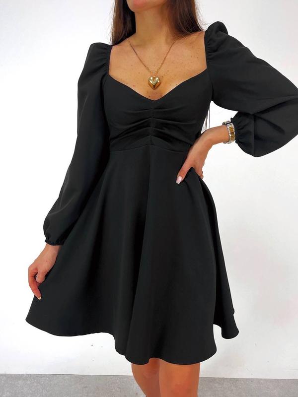 Модель 518 платье Материал костюмный креп Размерный ряд S,M,L,XL Цвета молоко и черный Это платье воплощение легкости и романтизма Модель с длинными рукавами, застегивается на потайную молнию Рукава и плечики на резинке, в зоне декольте сборка Супер качество Цена 620 грн