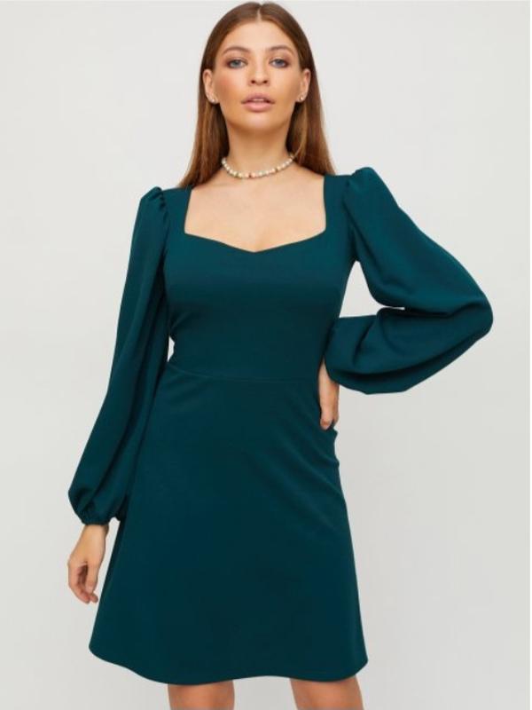 Красива сукня темно-зеленого кольору. Розмір М(44) Довжина міні, об'ємні рукава додають сукні елегантності)