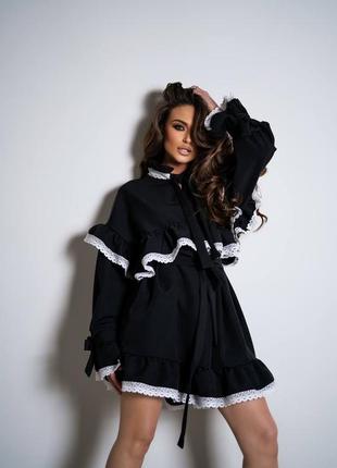 Ефектна сукня міні вільного крою. сукня декорована бавовняним мереживом. Вільна сукня здатна створити жіночний образ на всі випадки життя. 💕 💭Размір: універсальний 💭Ціна 1480 грн 🎨чорний, хакі Тканина креп-костюмка, бавовняне мереживо