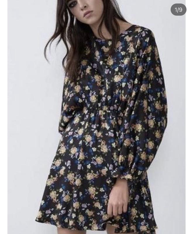 Плаття в дрібні квітки від ZARA в ідеальному стані! Тканина дуже схожа на шаржевий шовк, але це якісний поліестер! На інших сервісах пишуть, що це сатин, проте я орієнтуюсь по бірці) Є підкладка, на талії і рукавичках резинка, фасон рукава - літуча миша! Розмір XS, але майте на увазі, що плаття підійде на зріст не менше 165см! Моя донька зростом 160 см, то на неї воно дуже велике, тому орієнтуйтесь по замірам! Рукав від ворота 66, плечового шва як такого немає, по талії не розтягуючи резинку 32, довжина спіднички 48, загальна довжина 88см.