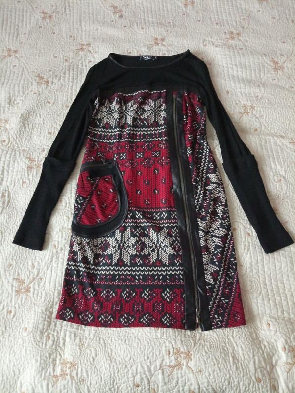 Плаття дівоче. У хорошому стані. Виробник - Білорусія. Ви навіть не уявляєте, яке воно гарне, як гарно сідає по фігурі, як її підкреслює! Надзвичайно модний дизайн - поєднання сучасного стилю і національного орнаменту. Воно неповторне. Має яскраві, насичені кольори. Основний матеріал - цупкий трикотаж, а в області шиї і частина рукавів - з тонкого, еластичного, напівпрозорого матеріалу. Ніколи і нізащо з ним не розпрощалась би, якби на сьогодні носила одяг у розмірі S, чи М)))))... З недоліків - є катишечки, які можна легко прибрати.