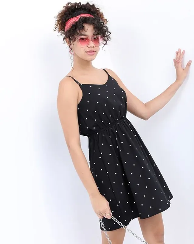 Дуже стильне плаття в горошок, на бретельках, на підкладці не світиться, талія на резинці 32см тягнеться до 40см., ПОГ 48см,довжина 91см.Розмір вказано S, але піде і на М.