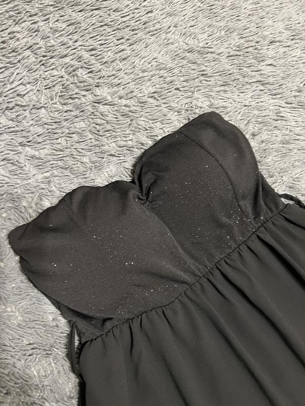 Чорне міні плаття 🥰 Верх з блискучої нитки, є чашки Низ шифон, є підкладка Краще підійде для ниженької дівчини