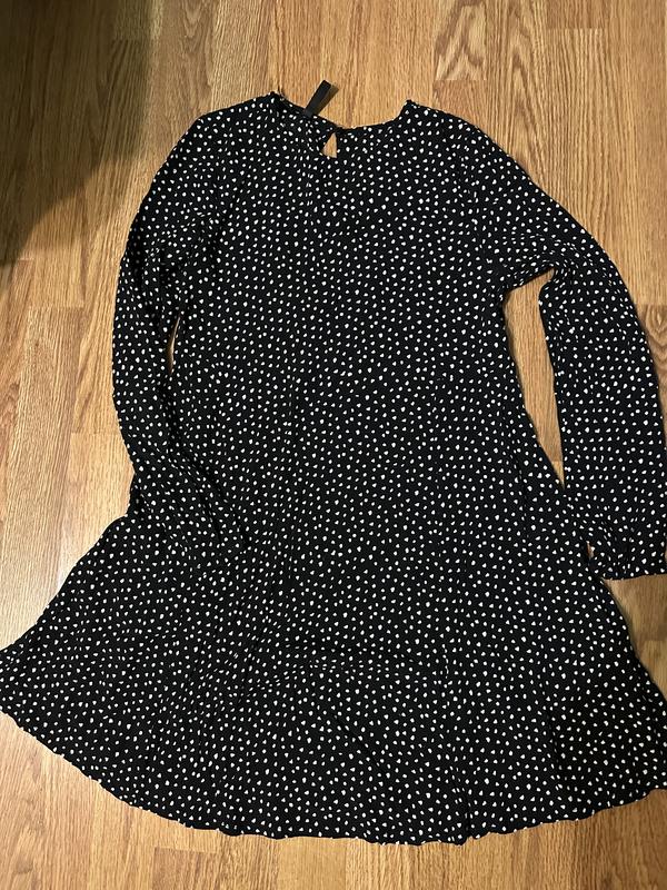 Плаття зі струмливої тканини з принтом. Круглий виріз горловини, довгі рукави, ззаду застібка у формі сльози. А-силує