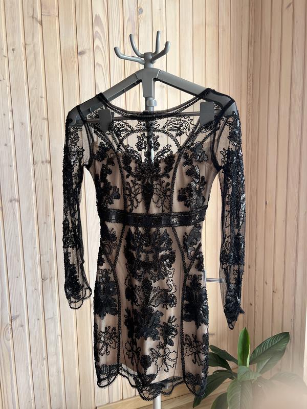 Плаття обшите бісером , знизу з підкладкою , відкрита спина в ідеальному стані , розмір s