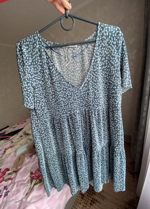 Миле плаття, яке можна носити з кросівками, шнурованими черевиками, чобітьми козаками виглядає просто🔥🔥🔥 Варіантів стилізації маса! Колір неймовірно привабливий, синьо-бірюзовий з білими квіточками. Розмір М. Можна носити як oversize. Стан нового! Заміри такі: Півобхват грудей - 52 см Півобхват талії - 51 см Плечі - 37 см Рукав - 20 см Довжина - 80 см В стегнах - вільно