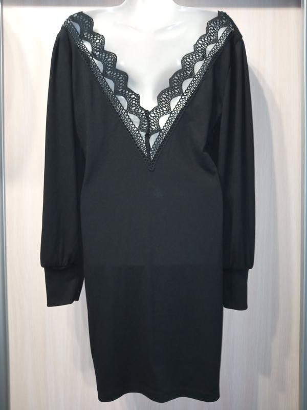 красивое черное платье с вырезом на спине, вырез украшен кружевом