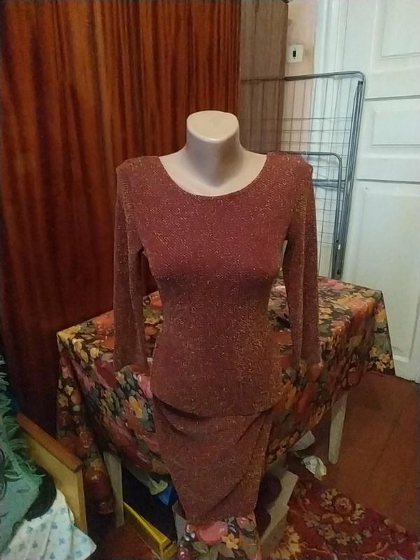 очень красивое короткое люриксовое платье.Ткань хорошо тянется и великолепно смотрится.Размер указано 2хс,хм,но подойдёт и на с(на манекене). описание состояние отличное длина 82 рукав не длинный 44 ширина груди 37 ширина бедер 38