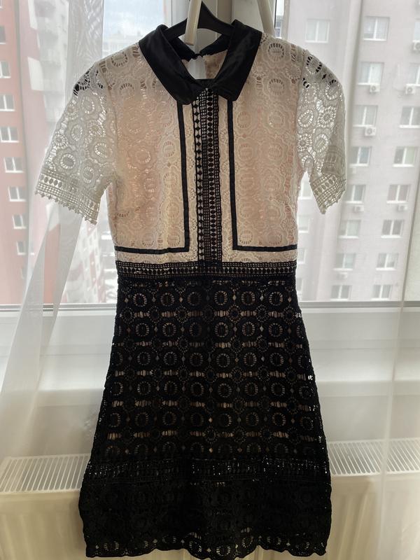 Мереживне плаття з атласним котірцем та блискавкою на спині Підкладка з тілесної сітки Довжина 92 Талія 36