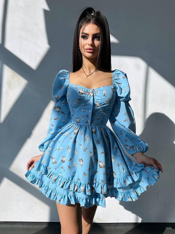 Кукольное платье с пышной юбкой и корсетным верхом с нежным цветочным принтом ▫️тканина: софт ▫️размер: S и М