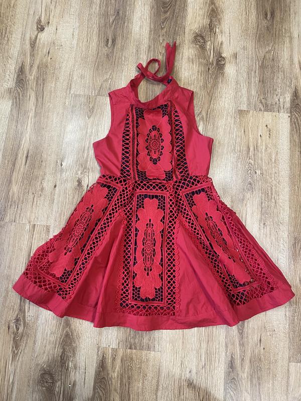 Стан ідеал, вдягалось 1 раз. Виглядає дуже ефектно!! Носила як на повномірну М. А так можна і на С , буде трошки свободніше. Є підкладка, ззаду застібається на молнію, на шиї зав’язується ззаду. Спинка виглядає дуже гарно. Довжина 82 см Під пахвами 44 см Талія 38 см