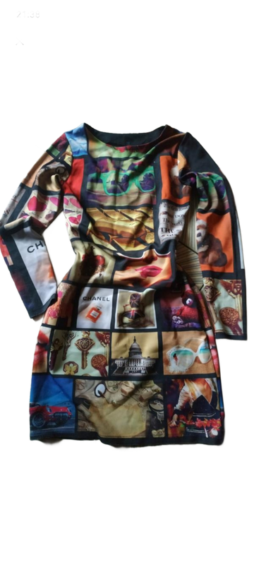 яскрава жіноча сукня з модним принтом з довгим рукавом є невелика зачіпка, не видно при носінні, останнє фото