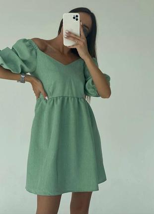 Тканина: льон габардин Розмір: 42-44 та 44-46 Колір : оливка, блакитний Красива лялькова сукня з легкої дихаючої тканини😍 Завищена вільна талія, довжину рукавів можна регулювати за допомогою резиночки🔥 • ФОТО РЕАЛ ПАРАМЕТРИ: 42-44 / 44-46 ДОВЖИНА від плеча 85 см / 85 см Рукав 40 см 40 см ОГ 84-89 см / 90-95 см OT 78 см / 85 cm