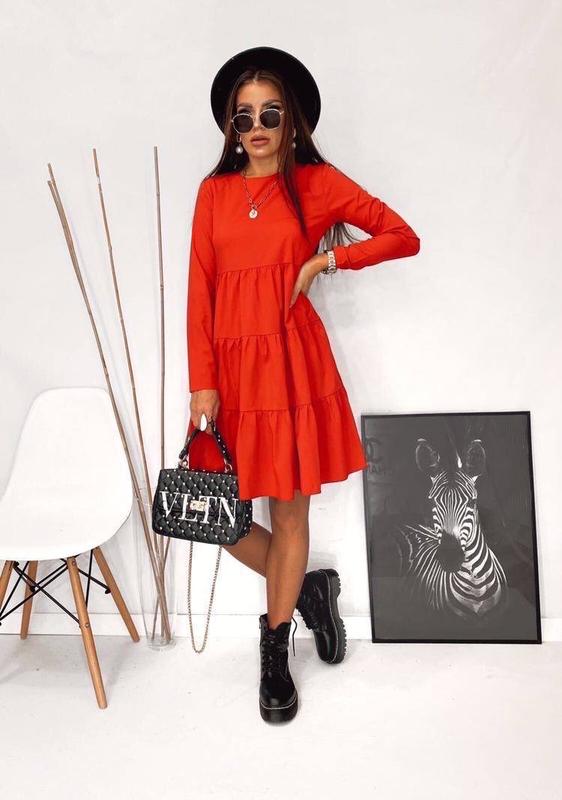 Сукня за 550 грн.❣️❣️❣️ Модель 5173. Розмір - 42-44, 44-46. Маиеріал - софт, Колір - червоний. Довжина - 96 см, рукав - 62 см. На спинці потайна молнія. Якість топ