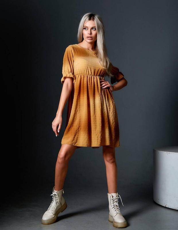 Стильна та романтична сукня з рукавами-ліхтариками, до яких вшито резинки Основна тканина - жатка (не еластична) 3шт размер 42 длина 85см., ог 82 - 86см от 66 - 70см об 88 - 92см 3шт размер 44 длина 86см., ог 86 - 90см от 70 - 74см об 92 - 96 4шт размер 46 длина 87см., ог 90 - 94см от 74 - 80см об 96 - 100 см 2шт размер 48 длина 89см., ог 94 - 98см от 80 - 84см об 100 - 104см