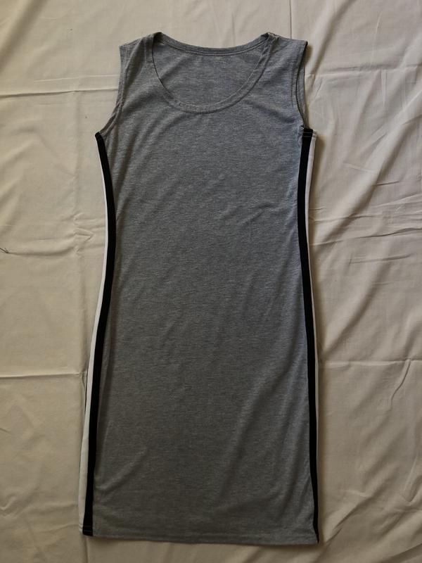 Очень приятное к телу платье на лето☀️ в спортивном стиле. Она имеет по бокам черно-белые полоски. длина - 84 пог +- 39 на наборе указан 44 размер, однако на S садится отлично) Прекрасно тягнеться. В отличном состоянии, ищет свою новую обладательницу;)