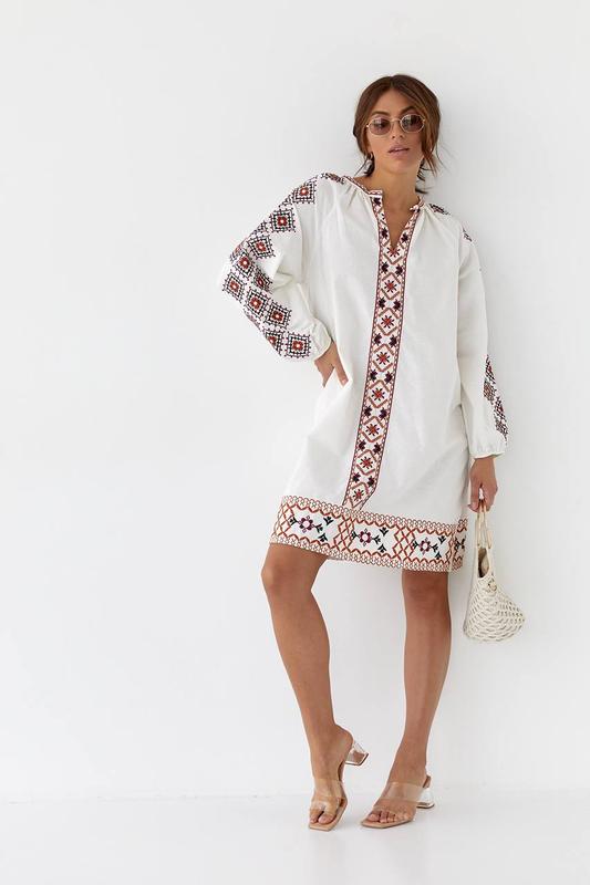 Бавовняне сукня-вишиванка прямого крою. Перед красою сукні-вишиванки просто неможливо встояти! Ця модель іде з довгими рукавами, які внизу зібрані на резинку. Кругла горловина з V-подібним вирізом прикрашена вишивкою. ❤️ Став Лайк, щоб не пропустити знижку на товар. 🚚 Доставка Нова пошта та Укрпошта! 💵Оплачуйте на пошті при отриманні, після перевірки та примірки! ❗️У разі оплати накладеним платежем вноситься передоплата 200 гривень. 💳Також можна сплатити одразу на картку. Приват або Моно. 📅Працюємо щодня. Доставка до вас 1-3 дні. 📷Повна відповідність товару та фотографій. 📝Швидкі консультації з усіх питань. Допоможемо зробити замір та підберемо Вам потрібний розмір! 📦Є обмін та повернення.