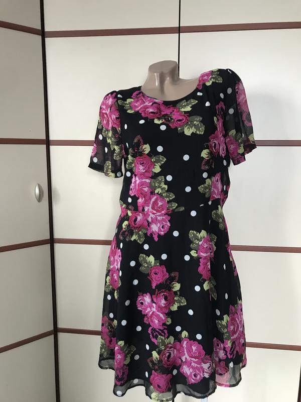 Красиве ,легеньке плаття,розмір M-L(вказаний 14)довжина 90см,пог 50см,пот 43см,,до низу вільне,позаду замок.