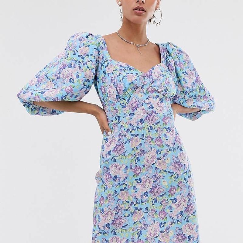 Чайное платье в стиле Reclaimed Vintage с пуговицами и рукавом-буфом с цветочным принтом. Длина 82 Полуобъем под грудью 35 ПОТ 30 Поб44/48 Рукав 40
