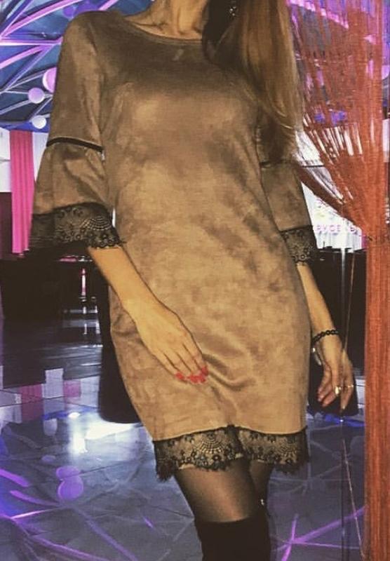 Дуже гарне плаття під замш з мереживом в ідеальному стані 😍 розмір С