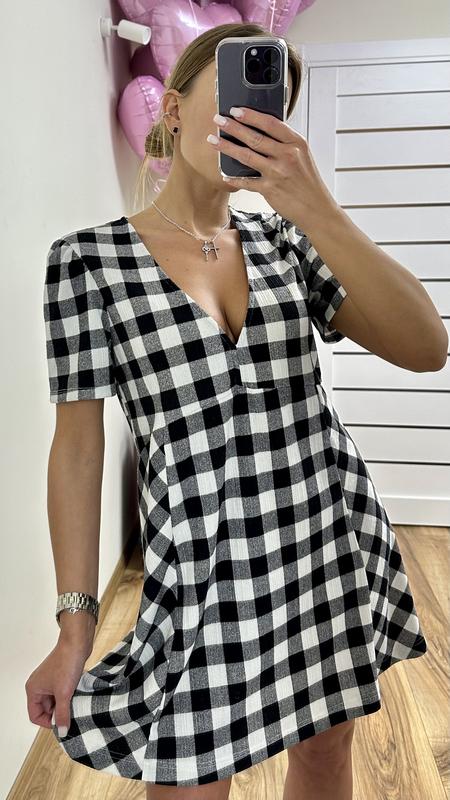 Сукня у клітинку Розмір 38(м) P.s одягнена на розмір s на фото Довжина - 80 см Півобхталії- 44 см Півобхгрудей- 47 см