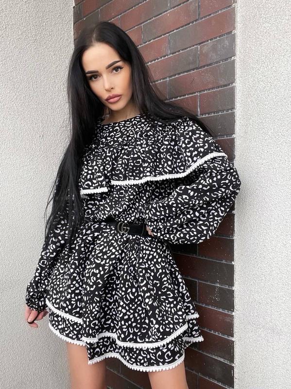 Сукня Мод 2027 Тканина софт Колір чорний принт лапка Розмір 42-44,44-46 ОГ88 ВІД88 ОБ104 Довжина виробу 82 см Слід розмір +4 см довжина +2 Ремінь + 60 грн Ціна 790 грн