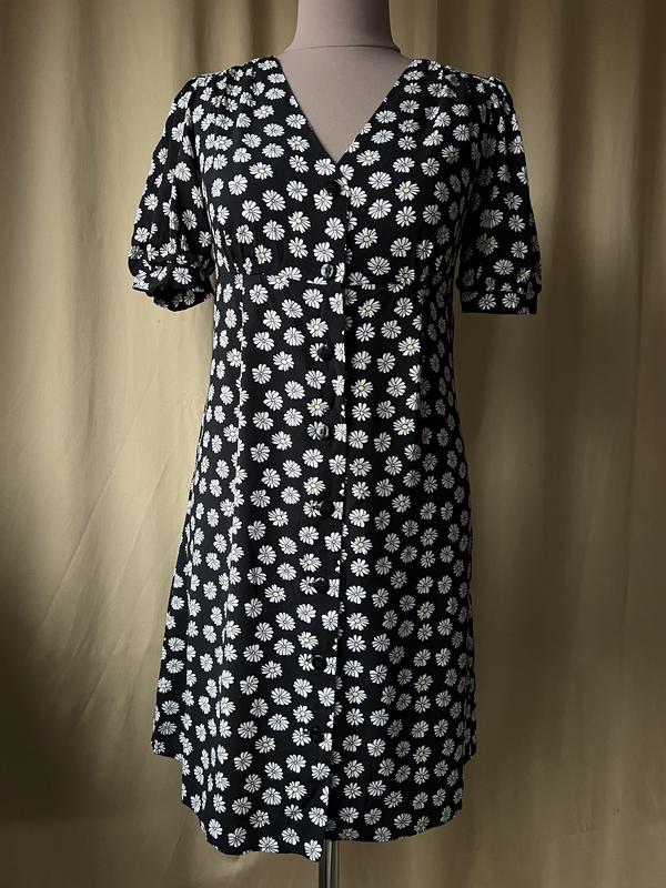Сукня в квітковий принт Ширина по лінії плечей 35 см Ширина по лінії грудей 44 см Ширина по лінії талії 38 см Ширина по лінії стегон 50 см Ширина низу 57 см Довжина 88 см Довжина рукава 25 см Склад матеріалу 100% віскоза