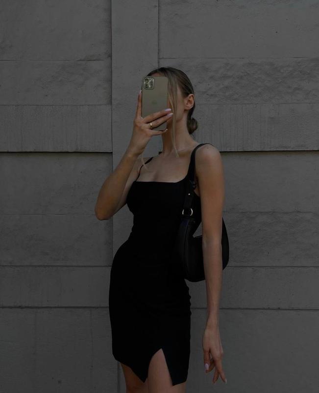Сукня ▫️Ткань: плотный креп дайвинг ▪️Цвет: черный ▫️Размер : XS-S, M-L Базовое капсульное платье из плотного качественного трикотажа по приятной цене. Приталенная модель с акцентным вырезом на брителях и разрезом по ноге в длине мини