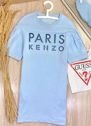 Редкое платье от Kenzo, оригинал💔 Очень дорогой бренд🔝 Платье свободного фасона, красивый голубой цвет, плотное,идёт с актуальными рукавами воланами, само платье прямого кроя, есть кармашки, принт вишитый и идёт как сеточкой, очень крутое и эксклюзивное😍, классно свободно сидит на теле Размер: бирочка с размером отсутствует, идёт на Xs-S длина 80см, пог 45см, поб 48см, плечи спущены Состояние: идеальное