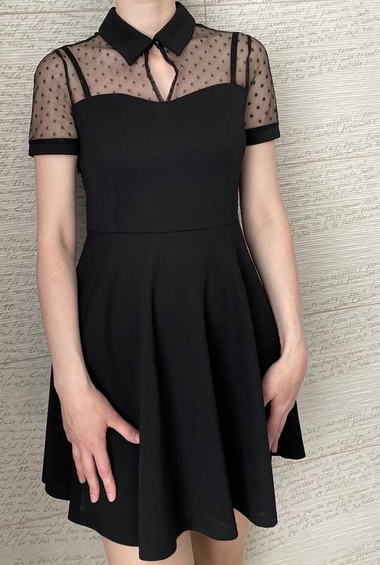 Маленьке чорне плаття. Дуже зручне та елегантне, без дефектів. Плечі мереживні, на комірці ґудзичок. Буде на С та М