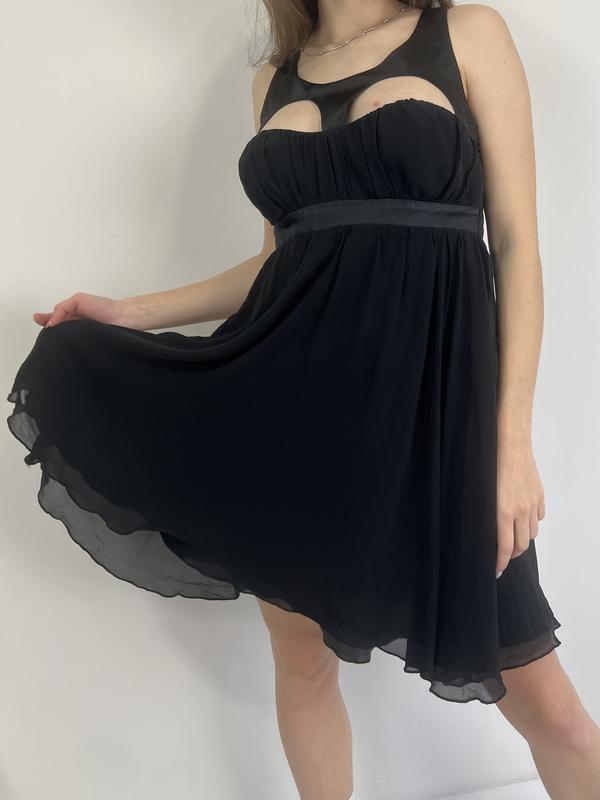 Lipsy чорна шовкова коротка сукня з розрізами та відкритою спиною, летюче вільне міні плят...