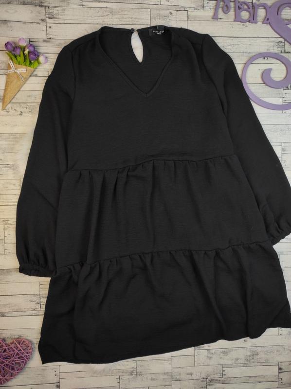 Жіноча сукня New Look чорна Стан: б/в, у відмінному стані Виробник: New Look Розмір: по бирці 14, але реально йде на L (48) Колір: чорний Виміри Напівобхват грудей: 49 см Напівобхват талії: 45 см Напівобхват стегон: 68 см Довжина: 88 см Довжина рукава: 60 см Ширина по плечах: 38 см