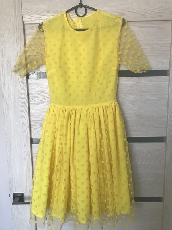 Сукня жовтого кольору Розмір XS-S ОГ - 38см Довжина по спинці - 94 см Довжина рукава - 27 см Одягнена один раз Шита на замовлення