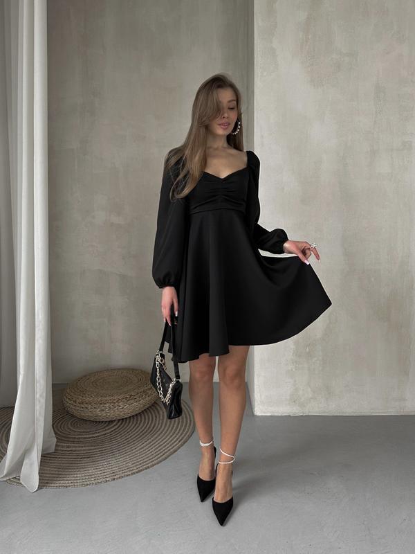 Модель 518 Жіноча сукня Матеріал костюмний креп Розмірний ряд S,M,L,XL Кольори молоко та чорний Ця сукня втілення легкості та романтизму Модель з довгими рукавами,застібається на потайну блискавку Рукава та плечики на резинці, у зоні декольте збірка Супер якість Ціна 630 грн