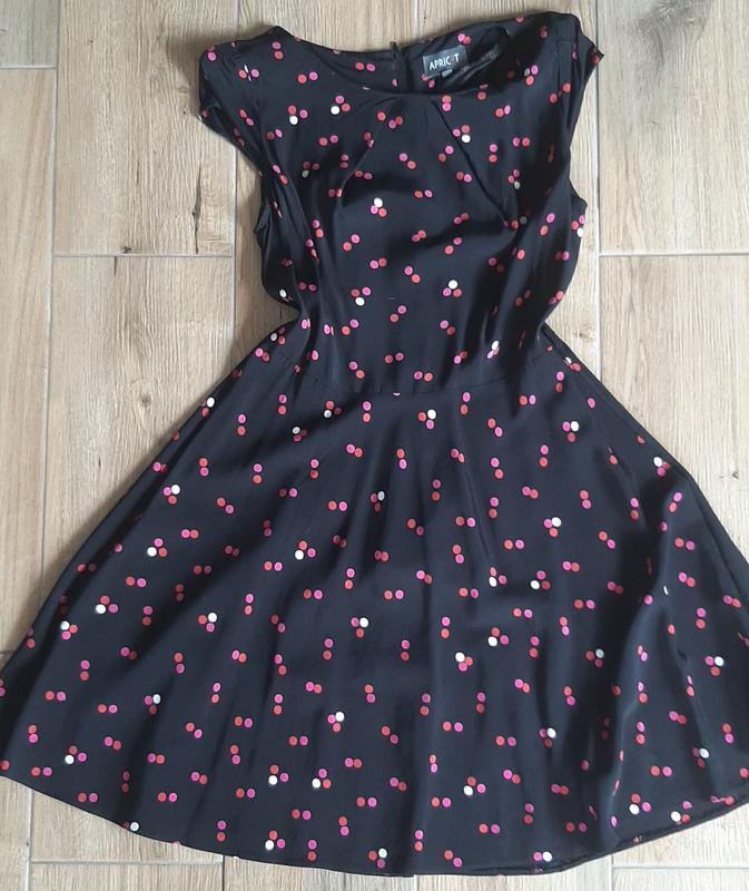 Платье в горошек, красиво ложится на фиуру. имеет внизу небольшой (не очень заметный) эффект.