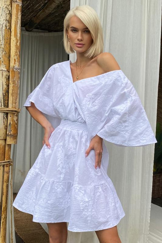 Тканина: бавовна Склад: 99% бавовна, 1% еластан Колір: білий Розмір: S, M, L, XL 🔥Фактичні виміри виробу:🔥 Об'єм по грудях: S-120; M-120; L-128; XL-128; Об'єм по талії: S-60/70; M-64/74; L-68/78; XL-72/82; Об'єм по стегнам: S-136; M-140; L-144; XL-148; Довжина виробу по спинці: S-98; M-98; L-99; XL-99; Довжина юбки: S-47; M-47; L-48; XL-48; Довжина рукава від шиї: S-40; M-40; L-40; XL-40;