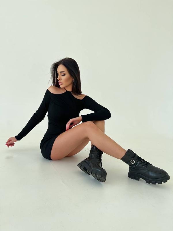 Ткань - турецкий рубчик Размеры - 42-44 и 44-46 Цвета - беж и черный Мод1040 Идеальное платье мини из плотного рубчика которое будет моделировать вашу фигуру. Сверху на завязках, можно регулировать