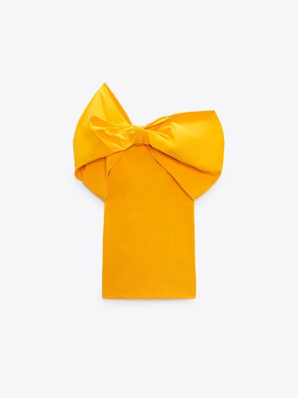 Коротка сукня з асиметричним вирізом Zara. Великий бант з об'ємними деталями та складками. Верх сукні прорезинений, щоб сукня гарно трималася на тілі. Дуже оригінальний фасон та яскравий колір, колекція Limited edition. Розмір S. Made in 🇲🇦 Morocco. Заміри: (тканина дуже гарно тягнеться, Заміри в спокійному стані були зроблені) пог - 37 см Пот- 34 см поб - 40 см довжина - 83 см Склад: 72% ВІСКОЗА 25% ПОЛІАМІД 3% ЕЛАСТАН