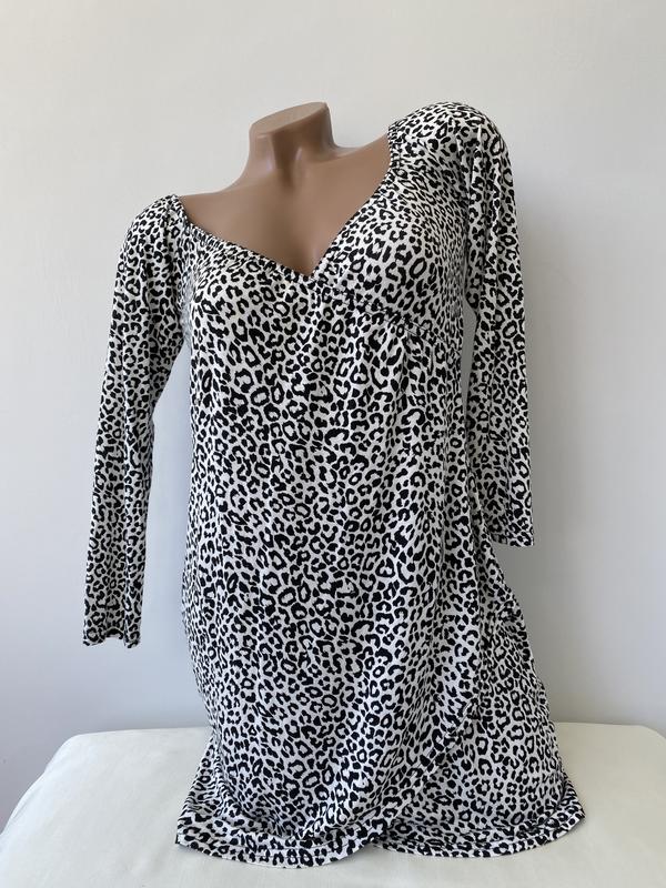 Сукня трикотажна з рукавами з віскози в принт лео платье трикотажное вискозное boohoo
