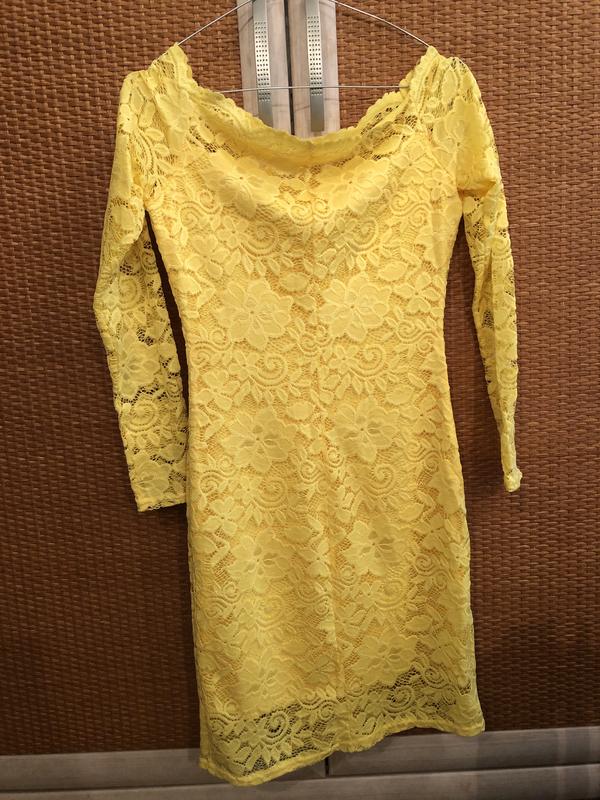 Плаття жовте гепюр з підкладом Пог 39 Довжина 88 Талія 32 Бедра 37