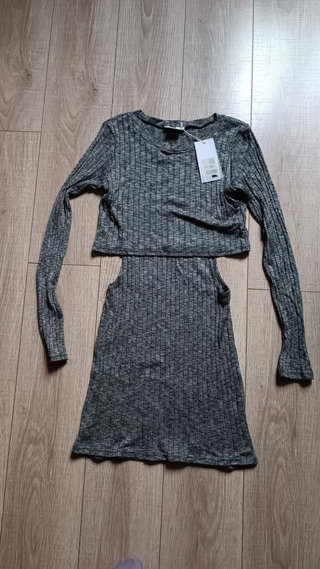 Плаття в рубчик нове з біркою, розрізи на талії, імітація топу з спідницею, розмір xs, сезон весна, тепла осінь