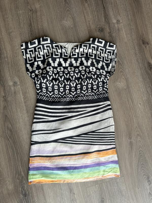 Дуже класна, в прекрасному стані! розмір М, не тягнеться, не просвічується! підкладка бавовна, верх натуральний льон! є кармани . пог 48см , пот 46см., поб 53см., довжина 90см